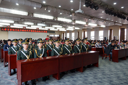 學(xué)院黨群工作部、學(xué)工處(團(tuán)委)全體人員,各系黨總支書記、學(xué)工辦主任,院學(xué)生會全體成員、各系學(xué)生會主要干部,國旗班、軍樂團(tuán)、青年馬克思讀書會、學(xué)生記者團(tuán)學(xué)生代表等近400人現(xiàn)場聆聽了報告。