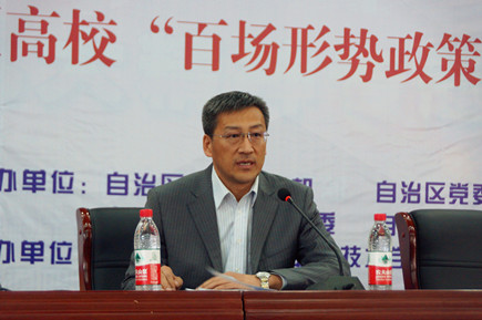 學(xué)院黨委副書記、紀(jì)委書記白托婭主持報(bào)告會(huì)。她指出,孫書記用生動(dòng)地講述使我們對黨的歷史、黨的奮斗目標(biāo)、中國建設(shè)發(fā)展的現(xiàn)狀有了深入理解,堅(jiān)定了對以習(xí)近平同志為核心的黨中央集中統(tǒng)一領(lǐng)導(dǎo)的信心與信念。特別是孫書記通過幾個(gè)引人深思的哲理故事,教育引導(dǎo)青年學(xué)生如何把握機(jī)遇,成長為擔(dān)當(dāng)民族復(fù)興大任的時(shí)代新人。希望同學(xué)們在聆聽報(bào)告之后,深入思考,進(jìn)一步領(lǐng)會(huì)報(bào)告的深刻思想,特別是對我們青年人提出的一些具體要求,思考我們從現(xiàn)在開始要怎么做。尤其在座的都是學(xué)生骨干,大家身上的責(zé)任與擔(dān)當(dāng)更重,要在同學(xué)中發(fā)揮示范表率作用,結(jié)合自身實(shí)際,心懷理想,做好當(dāng)下,抓住機(jī)遇,鍛煉自己,學(xué)好專業(yè)知識,做品德高尚有理想的人,做合格的社會(huì)主義接班人和建設(shè)者。