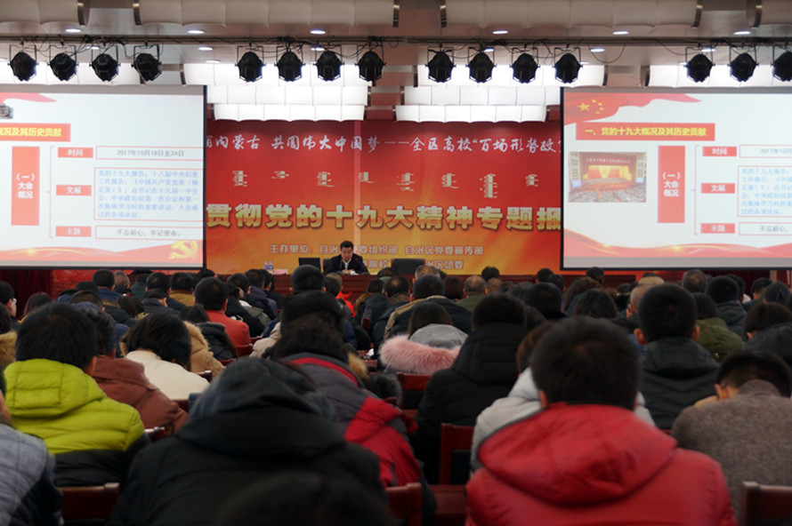12月4日下午,自治區(qū)宣講團(tuán)成員、發(fā)改委原巡視員鐵鋼走進(jìn)內(nèi)蒙古大學(xué)交通學(xué)院作形勢政策報(bào)告,面向師生宣講黨的十九大精神。學(xué)院領(lǐng)導(dǎo)、副科級以上干部、教師和學(xué)生代表近400人參加了報(bào)告會。