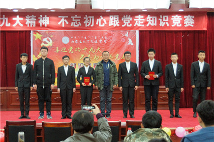 郭鵬飛代表黨群工作部和學生工作處(團委)總結(jié)點評本次活動。他首先祝賀本次競賽活動取得圓滿成功,祝賀所有參賽選手在活動中得到巨大的知識和精神上的收獲。他指出,在我院持續(xù)掀起學習貫徹宣傳黨的十九大精神熱潮時,主題知識競賽活動無疑起到了薪添旺火的作用,題庫設計量大面廣點全,準備工作非常充分,競賽選手的臨場表現(xiàn)和發(fā)揮集中體現(xiàn)了我院學生朝氣蓬勃的青春力量和堅定執(zhí)著地共產(chǎn)主義理想信念。他強調(diào),青年學生是祖國和民族未來的希望,一定要懷著“不忘初心跟黨走、青春建功新時代”的執(zhí)著信念,把個人的理想追求融入國家和民族的事業(yè)中,從自身成長和社會發(fā)展進步兩個角度全面把握培育和踐行新時代青年的內(nèi)在要求。學院會為青年大學生對習近平新時代中國特色社會主義思想的學習貫徹宣傳創(chuàng)造更多有利條件,學院已經(jīng)在學生中成立了青年馬克思讀書會,還將成立學習習近平新時代中國特色社會主義思想學生研究會和十九大精神學生宣講團。他號召全院學生要把握歷史機遇,肩負偉大的歷史責任,用自己的實際行動將個人夢和中國夢相結(jié)合,腳踏實地,奮力前行,為實現(xiàn)中華民族偉大復興中國夢而不斷努力。