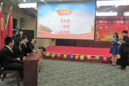 本次競賽分為必答題、搶答題、風險題三個環(huán)節(jié),題庫準備了1000道考題,內(nèi)容涵蓋了十九大、新黨章黨規(guī)黨紀、習近平系列重要講話等相關知識點。各代表隊參賽選手使出渾身解數(shù),冷靜作答,密切配合,氣氛活躍而緊張,上演了一場精彩紛呈的黨建文化盛宴。競賽現(xiàn)場精彩紛呈,高潮迭起,選手們既有毫不猶豫的快速回答,也有充分商討后的沉著應答,展現(xiàn)了他們豐富的知識積累和敏捷的思辨能力。在工作人員統(tǒng)計分數(shù)的間隙,主持人與現(xiàn)場學生進行了互動,把難度較大的風險題拋給大家搶答,有7位同學獲得了現(xiàn)場搶答獎勵——《習近平系列重要講話讀本》。