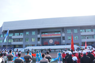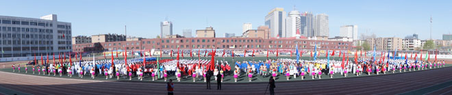 學院領導與學生方隊、觀眾和志愿者合影 | |