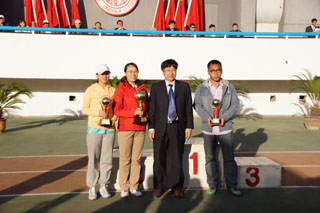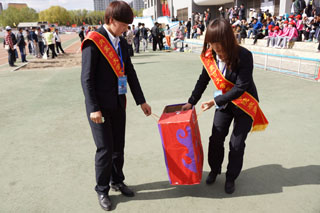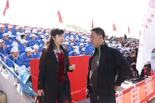 學院黨委副書記、紀委書記白托婭(左)在運動會場 |
