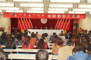 大會由學院常務副院長董平主持。學院黨委副書記、紀委書記白托婭,副院長孫恒,副院長武鈞,黨委委員、科研處處長李宏,黨委委員、教務處處長趙志蒙出席會議,200多名教職工參加大會。