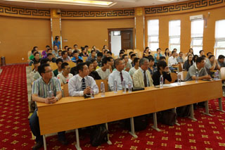 此前,日本鹿島道路株式會社生産技術(shù)本部副部長、執(zhí)行董事(工學博士)加形 護(KAGATA mamoru),日本國立鳥取大學生物資源環(huán)境學科基礎(chǔ)構(gòu)造學專業(yè)副教授、博士生導師緒方英彥(OGATA Hidehiko),日本國立鳥取大學生物資源環(huán)境學科基礎(chǔ)構(gòu)造學專業(yè)助教、博士、碩士生導師兵頭 正浩(HYODOU Masahiro),日本國立鳥取大學生物資源環(huán)境學科基礎(chǔ)構(gòu)造學專業(yè)碩士研究生井下 千尋(Ishita Chihiro,女)一行四人,于8月28日上午在我院報告廳分別作了題為《介紹對橋梁RC床板劣化損傷的預(yù)防性修補、補強技術(shù)》、《利用農(nóng)道防災(zāi)、減災(zāi)的措施》、《摻未利用再生資源和膨脹劑的自解體植被基地的強度研究》、《高品質(zhì)再生粗骨料生產(chǎn)技術(shù)研究》的專題講座。講座由科技處副處長、運輸工程系副主任曹瑾鑫主持,黨政辦副主任滿都拉博士翻譯。道路、橋梁工程系的100余名師生聽取了講座。