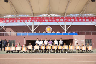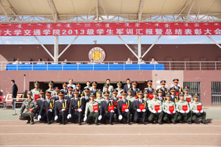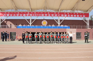 2013年9月5日,為期12天的內(nèi)蒙古大學(xué)交通學(xué)院2013級新生軍訓(xùn)圓滿結(jié)束并在南校區(qū)操場舉辦新生軍訓(xùn)匯操暨表彰大會。中國人民解放軍駐內(nèi)蒙古大學(xué)后備軍官選培辦主任胡成,內(nèi)蒙古大學(xué)學(xué)工處副處長(團(tuán)委副書記)武裝部副部長海光,學(xué)院常務(wù)副院長董平,黨委副書記、紀(jì)委書記、軍訓(xùn)工作領(lǐng)導(dǎo)小組組長白托婭,副院長孫恒,副院長武鈞和各系黨總支書記出席表彰大會并在主席臺就坐。學(xué)工處副處長、團(tuán)委副書記高飛主持大會。