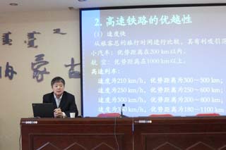 徐維祥教授從高速鐵路發(fā)展概況開篇,首先介紹了高速鐵路速度快、運(yùn)能大、安全性高、準(zhǔn)確性高、能耗少、占地省、環(huán)境污染輕、舒適度高、效益好等九大優(yōu)點(diǎn),而中國的國情又特別適合發(fā)展高速鐵路;其次介紹了中國高速鐵路“四縱四橫”的發(fā)展規(guī)劃藍(lán)圖和高速列車的十大關(guān)鍵技術(shù);最后詳細(xì)介紹了高鐵安全管理系統(tǒng)和高鐵旅客服務(wù)系統(tǒng)。