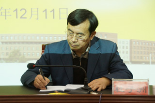 自治區(qū)教育實(shí)踐活動(dòng)第十督導(dǎo)組副組長杜子洲、成員周立軍,學(xué)院黨委書記孫智憑、院長柴金義、常務(wù)副院長董平、黨委副書記、紀(jì)委書記白托婭、副院長孫恒、副院長武鈞出席會(huì)議,學(xué)院副處級(jí)以上干部、副高級(jí)以上教師代表、離退休教師代表及學(xué)生代表等共70余人參加了會(huì)議。