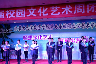 5月27日晚,第七屆校園文化藝術(shù)節(jié)閉幕式在交通樓A453舉行,學(xué)院常務(wù)副院長董平,副院長武鈞,學(xué)工處副處長、團(tuán)委副書記高飛,學(xué)工處副處長、就業(yè)指導(dǎo)中心主任季秋成,學(xué)生管理科科長崔建軍,組織宣傳科科長董小紅出席。院系的學(xué)生會干部,學(xué)生聯(lián)合會、國旗班、圖館會、軍樂團(tuán)、社團(tuán)聯(lián)合會全體成員和學(xué)院學(xué)生共500余人觀看了閉幕式晚會。