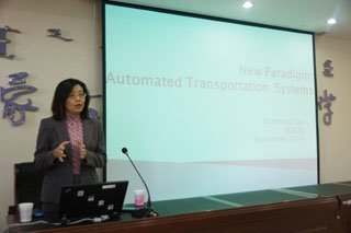 2014年11月5日上午,學(xué)院邀請(qǐng)美國新澤西理工大學(xué)土木與環(huán)境工程系交通規(guī)劃劉榮芳教授在交通樓A351會(huì)議室做了題為“新范式—自動(dòng)交通運(yùn)輸系統(tǒng)(New Paradigm: Automated Transportation Systems)”的學(xué)術(shù)報(bào)告。運(yùn)輸工程系副主任(主持工作)王征宇副教授主持講座。運(yùn)輸工程系、科研處及相關(guān)學(xué)科的教師和學(xué)生100多人聽取了講座。