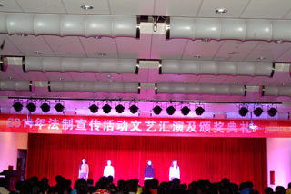 頒獎晚會一共分為兩個部分,第一部分為宣傳月中所有的優(yōu)秀作品的展示及表彰,第二部分是同學(xué)們精心準備的各種法制文藝節(jié)目,頒獎晚會持續(xù)兩個多小時,給學(xué)們留下了深刻的印象。