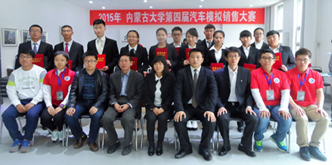 5月6號(hào)下午,內(nèi)蒙古大學(xué)第四屆汽車模擬銷售大賽決賽在交通學(xué)院汽車工程系汽車銷售展廳舉行。出席本次比賽的嘉賓有:內(nèi)蒙古大學(xué)交通學(xué)院黨委副書記、紀(jì)委書記白托婭,黨群工作部部長(zhǎng)李廣武,教務(wù)處副處長(zhǎng)趙麗珠,學(xué)工處副處長(zhǎng)季秋成,學(xué)工處副處長(zhǎng)馮俊杰,汽車工程系副主任李政,運(yùn)昌駕校業(yè)務(wù)經(jīng)理蘇和先生。內(nèi)蒙古泰隆汽車服務(wù)公司東風(fēng)標(biāo)致4S店總經(jīng)理周永新女士、中升豐田汽車服務(wù)營(yíng)銷有限公司銷售總監(jiān)任彥兵先生、神龍公司營(yíng)銷培訓(xùn)講師姚延剛老師、第三屆汽車模擬銷售大賽總冠軍陳濤同學(xué)擔(dān)任決賽評(píng)委。汽車工程系黨總支鐘懷軍書記致詞并宣布比賽開(kāi)始。