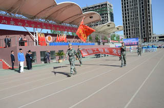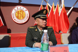 內(nèi)蒙古大學(xué)副校長張吉維,內(nèi)蒙古大學(xué)黨委委員、交通學(xué)院黨委書記孫智憑,內(nèi)蒙古陸軍預(yù)備役步兵第30師副參謀長王磊、軍務(wù)科長孟昭輝,內(nèi)蒙古大學(xué)黨政辦副主任溫毅剛、保衛(wèi)處副處長金山;內(nèi)蒙古大學(xué)交通學(xué)院常務(wù)副院長董平,黨委副書記、紀(jì)委書記白托婭,副院長孫恒,副院長武鈞,黨委委員、教務(wù)處處長趙志蒙以及相關(guān)職能部門負(fù)責(zé)人、系部黨總支負(fù)責(zé)人出席開幕式并在主席臺就坐。我院師生2300余人參加了開幕式。