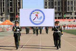 開幕式由黨政辦公室主任胡利春主持,在雄壯高昂的運(yùn)動員進(jìn)行曲中,各系學(xué)生和教工方隊(duì),機(jī)關(guān)、教輔單位職工方隊(duì),步伐矯健,口號響亮,依次走過主席臺接受檢閱。隆重的入場式后,開幕式舉行了莊嚴(yán)的升國旗儀式,在嘹亮的國歌聲中,五星紅旗冉冉升起。