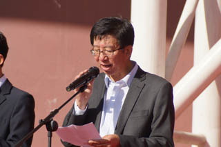 學(xué)院常務(wù)副院長董平致運(yùn)動會開幕詞。首先,他代表學(xué)院對第46屆田徑運(yùn)動會的開幕表示祝賀,對到場的所有領(lǐng)導(dǎo)嘉賓表示熱烈的歡迎,對為本次運(yùn)動會籌備工作付出辛勤勞動的老師、同學(xué)們表示誠摯的謝意。他說,從上屆運(yùn)動會到這屆運(yùn)動會,學(xué)院在體育教學(xué)工作方面有了新的發(fā)展,高等學(xué)校體育工作基本標(biāo)準(zhǔn)得到貫徹落實(shí)。突破自我、超越自我的體育精神有了新的傳承與發(fā)揚(yáng),群眾性體育活動有了新的進(jìn)步。伴隨著觀念的更新,越來越多的老師和同學(xué)參加到了各種各樣的活動中。這些豐富的活動,為提高校園文化建設(shè)和大學(xué)精神的弘揚(yáng),堅(jiān)持全面貫徹教育方針,大力推進(jìn)素質(zhì)教育,特別是提高學(xué)生的身體素質(zhì)起到了積極作用。此次運(yùn)動會將是對體育教學(xué)工作的集中檢閱,也是群眾性體育活動和校園文化建設(shè)的集中展示。交通學(xué)院是一個有著光榮歷史和優(yōu)良傳統(tǒng)的院校,希望同學(xué)們抓住在校期間的每一個機(jī)會,不斷提升自己的能力,使自己成為新時代的優(yōu)秀學(xué)子和合格人才,希望在本屆運(yùn)動會上秉承“更高、更快、更強(qiáng)”的體育精神,賽出成績、賽出風(fēng)格、賽出水平,賽出交通學(xué)院的風(fēng)采。最后,他祝愿本次運(yùn)動會圓滿成功!