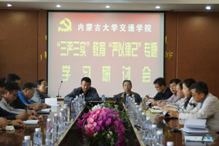 為深入貫徹自治區(qū)黨委組織部《關(guān)于認(rèn)真落實“四個一”要求,深入扎實開展專題學(xué)習(xí)研討的通知》(內(nèi)組通字〔2015〕28號)和《內(nèi)蒙古大學(xué)關(guān)于認(rèn)真做好嚴(yán)以律己專題學(xué)習(xí)研討會的通知》(內(nèi)大黨組發(fā)〔2015〕11號)的有關(guān)精神,筑牢“三嚴(yán)三實”思想根基,進(jìn)一步增強(qiáng)全院黨員干部思想和行動自覺性,9月15日下午,在交通樓A439會議室,學(xué)院黨委召開“三嚴(yán)三實”教育“嚴(yán)以律己”專題學(xué)習(xí)研討會。