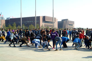 2014年11月4日中午,溫暖的陽光照射在內(nèi)蒙古大學(xué)南區(qū)廣場,交通學(xué)院學(xué)工處(團(tuán)委)學(xué)生聯(lián)合會(huì)的心理健康教育部正在組織學(xué)生參與一場愉悅身心的團(tuán)體游戲項(xiàng)目比拼?!凹佑?!”“加油!”吶喊助威聲不絕于耳。