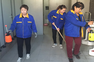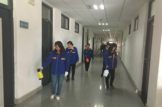 后勤人員對教學(xué)樓內(nèi)、交通樓內(nèi)衛(wèi)生間進(jìn)行消毒 |