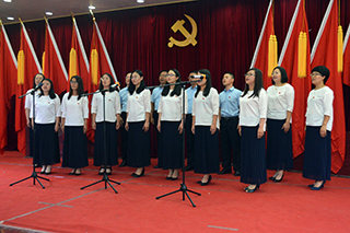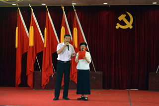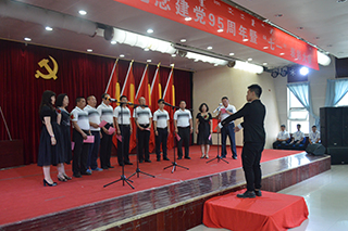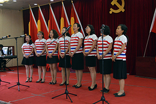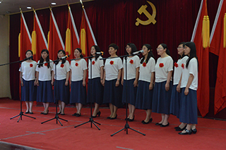 紀(jì)念暨表彰大會后,孫智憑書記和化學(xué)化工學(xué)院退休教師趙薇即興合唱了一首《長江之歌》獻(xiàn)禮黨的生日。各基層黨組織也向偉大的中國共產(chǎn)黨奉獻(xiàn)了精心準(zhǔn)備的生日禮物——“愛國、愛黨、愛人民”小合唱和配樂詩朗誦。