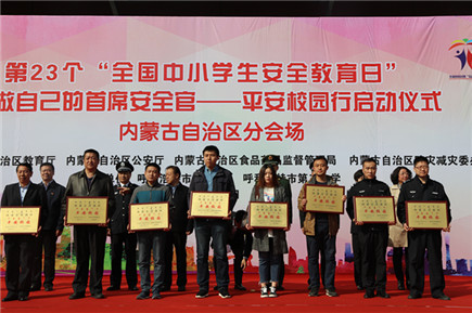 3月26日上午,由自治區(qū)教育廳、自治區(qū)公安廳、自治區(qū)食品藥品監(jiān)督管理局、自治區(qū)防災(zāi)減災(zāi)委辦公室聯(lián)合舉辦,呼和浩特市教育局、呼和浩特市第二中學(xué)承辦的“平安校園行啟動(dòng)儀式”在呼和浩特市第二中學(xué)操場(chǎng)舉行。會(huì)上為第一批獲得“平安校園”稱號(hào)的學(xué)校舉行了授匾儀式,我院后勤保衛(wèi)處處長(zhǎng)丁永欽代表學(xué)院參加了會(huì)議。