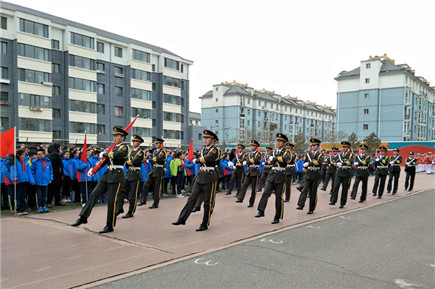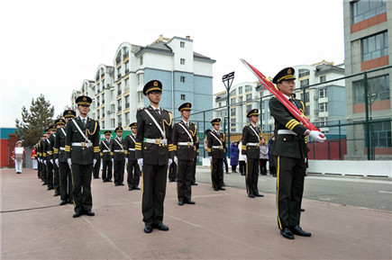 我院國旗班軍樂團(tuán)為通順街小學(xué)舉行升旗儀式