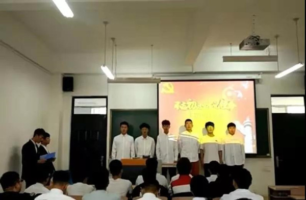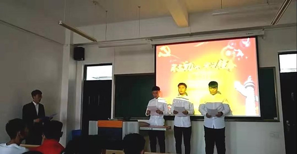 朗誦《不忘初心,牢記使命》、《不忘初心,跟黨走》、《我愛(ài)我的祖國(guó)》及合唱《團(tuán)結(jié)就是力量》、《強(qiáng)軍戰(zhàn)歌》、《我和我的祖國(guó)》,贏得了師生的陣陣掌聲。無(wú)不傳導(dǎo)著中國(guó)共產(chǎn)黨人那永不褪色的精神和那不畏艱險(xiǎn)、不懼困難、還有那銳意勃發(fā)的氣質(zhì)。團(tuán)日活動(dòng)讓全體同學(xué)倍感振奮,活動(dòng)臨近尾聲大家齊聲高呼:“不忘初心、牢記使命,團(tuán)結(jié)一致、砥礪前行!筑機(jī)1924班,加油!”響亮的口號(hào)響徹整個(gè)教室、整個(gè)樓道,激勵(lì)著在場(chǎng)每一個(gè)人。
