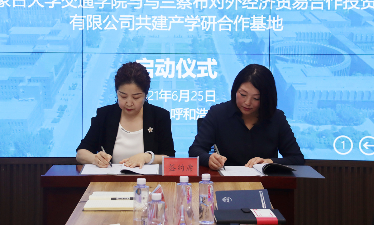 2021年6月25日下午,學(xué)院與烏蘭察布對(duì)外經(jīng)濟(jì)貿(mào)易合作投資發(fā)展有限公司在交通樓交通數(shù)據(jù)分析與可視化實(shí)驗(yàn)室舉行產(chǎn)學(xué)研合作基地”揭牌儀式。學(xué)院黨委副書記、院長白托婭,烏蘭察布對(duì)外經(jīng)濟(jì)貿(mào)易合作投資發(fā)展有限公司董事長趙奇志、副總經(jīng)理王生元、副總經(jīng)理李成兵、綜合管理部部長張華偉、子公司內(nèi)蒙古亞歐國際物流有限責(zé)任公司副總經(jīng)理張燕瓊,學(xué)院相關(guān)部門負(fù)責(zé)人參加了儀式。學(xué)院副院長武鈞主持揭牌儀式。