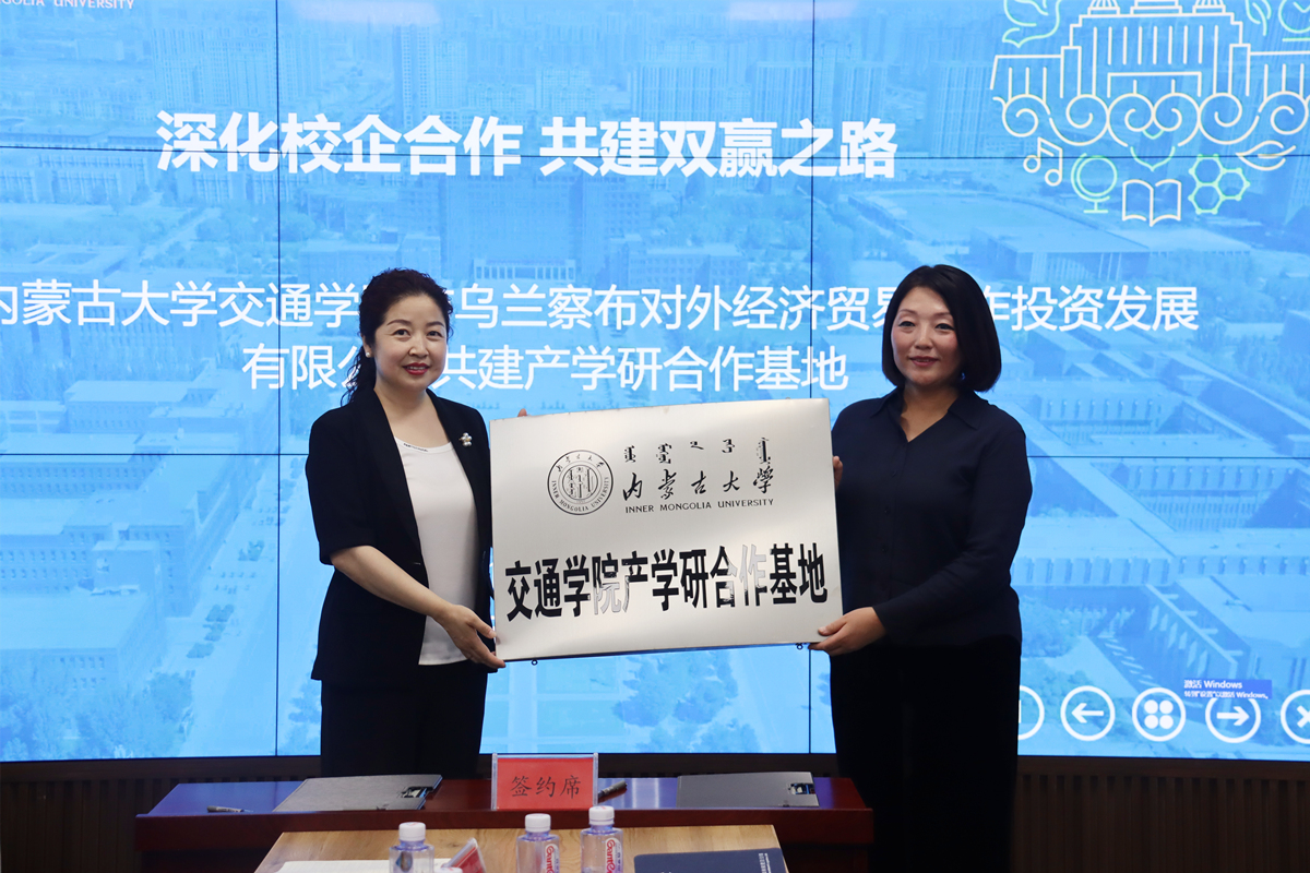 學(xué)院白托婭院長與烏蘭察布對(duì)外經(jīng)濟(jì)貿(mào)易合作投資發(fā)展有限公司趙奇志董事長簽訂了合作協(xié)議,共同為基地揭牌。