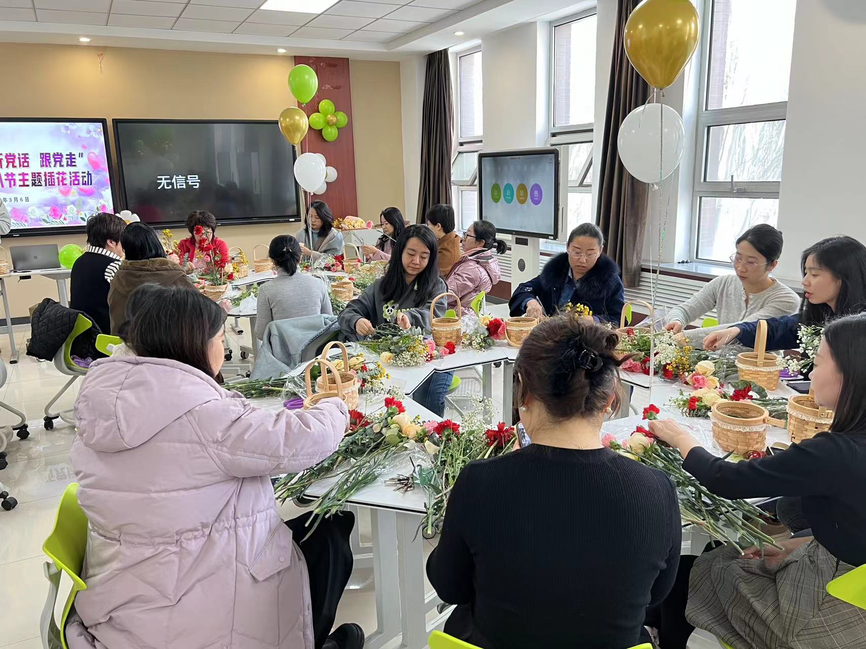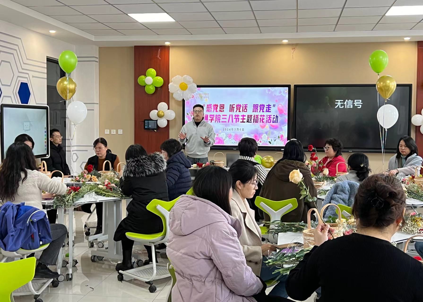 為慶祝三八國際勞動婦女節(jié),豐富女教職工的精神文化生活,3月6日,學(xué)院工會在交通樓A305智慧教室舉辦了插花活動,共有70多名女教職工參加此次活動。