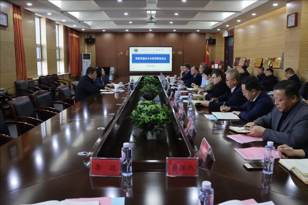 2025年3月6日上午,學(xué)校副校長周建濤來我院調(diào)研指導(dǎo),在交通樓A439會(huì)議室召開座談會(huì)。學(xué)校人事處副處長江洋陪同調(diào)研座談。