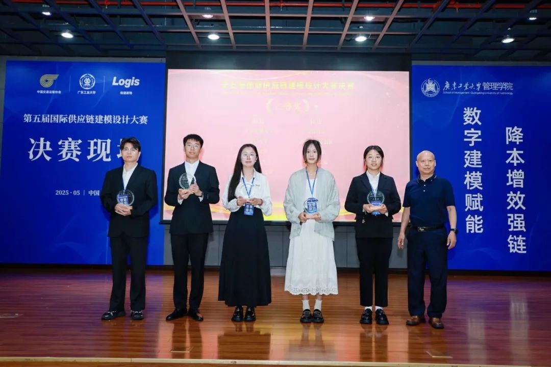 2025年5月18日,由中國交通運輸協(xié)會主辦的第五屆國際供應鏈建模設計大賽決賽在廣東工業(yè)大學圓滿閉幕。由我院學生杜宇、相馨語、李兆穎、趙瑞、畢叢琳同學組成的“策馬行云”隊獲得全國二等獎,任建偉教授和馮晨曦老師再度獲評“優(yōu)秀指導教師”稱號。