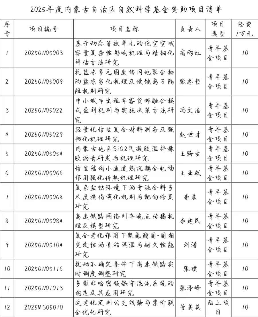 近日,內(nèi)蒙古自治區(qū)科學(xué)技術(shù)廳公布了2025年度內(nèi)蒙古自治區(qū)自然科學(xué)基金項(xiàng)目評(píng)審結(jié)果。我院共申報(bào)項(xiàng)目25項(xiàng),最終獲批22項(xiàng),項(xiàng)目獲批率達(dá)88%。其中,青年基金項(xiàng)目11項(xiàng),面上項(xiàng)目9項(xiàng),聯(lián)合基金項(xiàng)目2項(xiàng),總資助金額達(dá)206萬元。在項(xiàng)目數(shù)量和資助額度方面均實(shí)現(xiàn)了新的突破,體現(xiàn)出我院在科學(xué)研究與科技創(chuàng)新能力方面的持續(xù)提升與進(jìn)步。獲批項(xiàng)目清單如下。