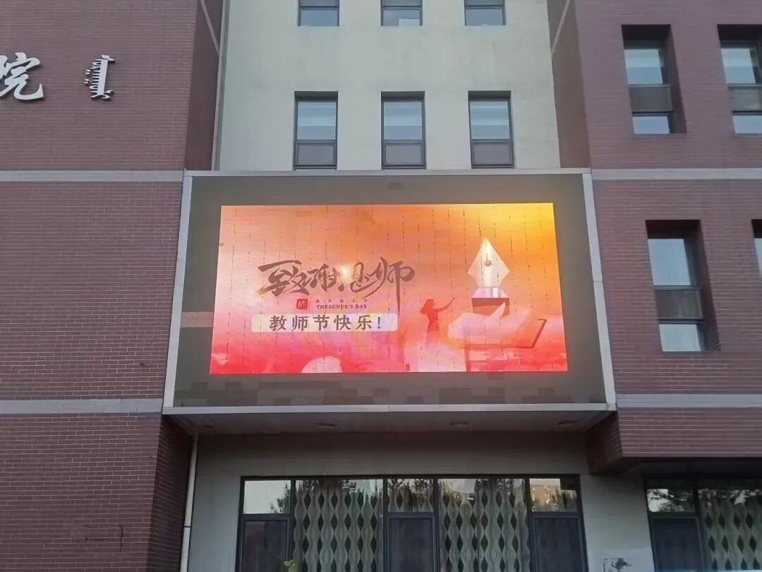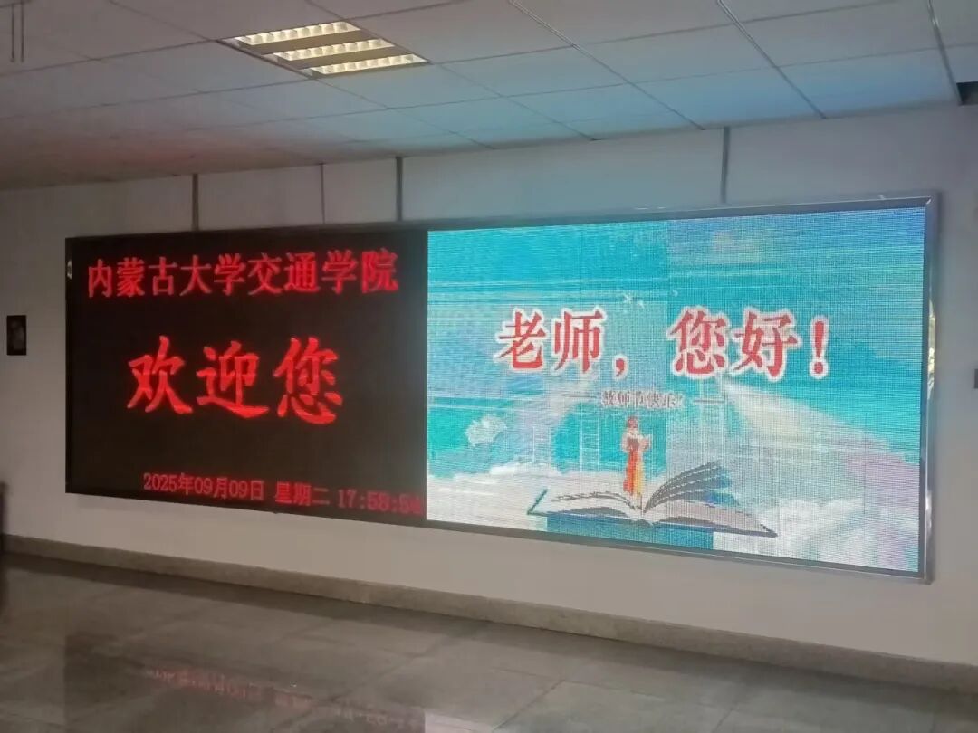 從9日晚開始,交通樓內(nèi)外五處LED顯示屏同時(shí)點(diǎn)亮,“老師,您好!”“老師,您辛苦啦!”“致敬恩師-教師節(jié)快樂”“祝全院教職工節(jié)日快樂!”等飽含深情的祝福語循環(huán)播放,營造出濃厚的尊師重教氛圍。